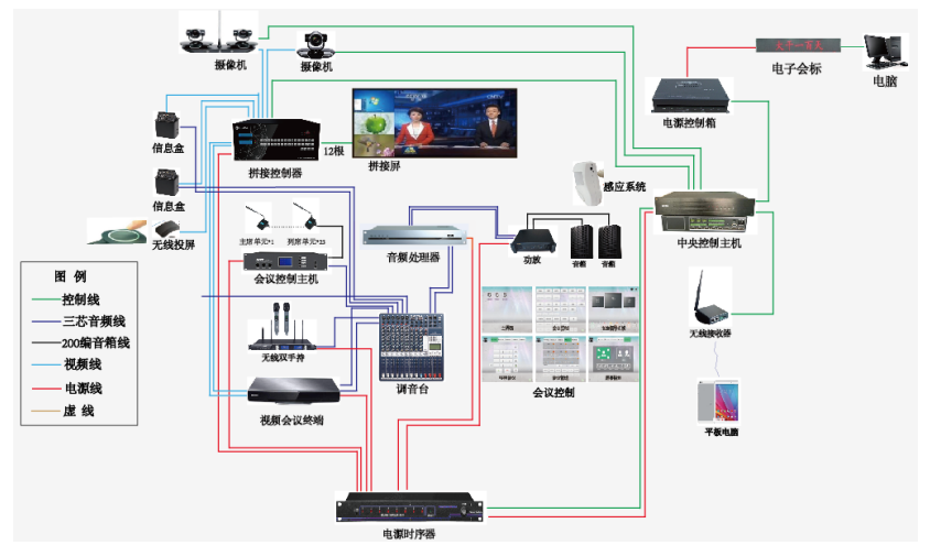 会议室音视频系统可由下列多个或者全部子系统组成:
